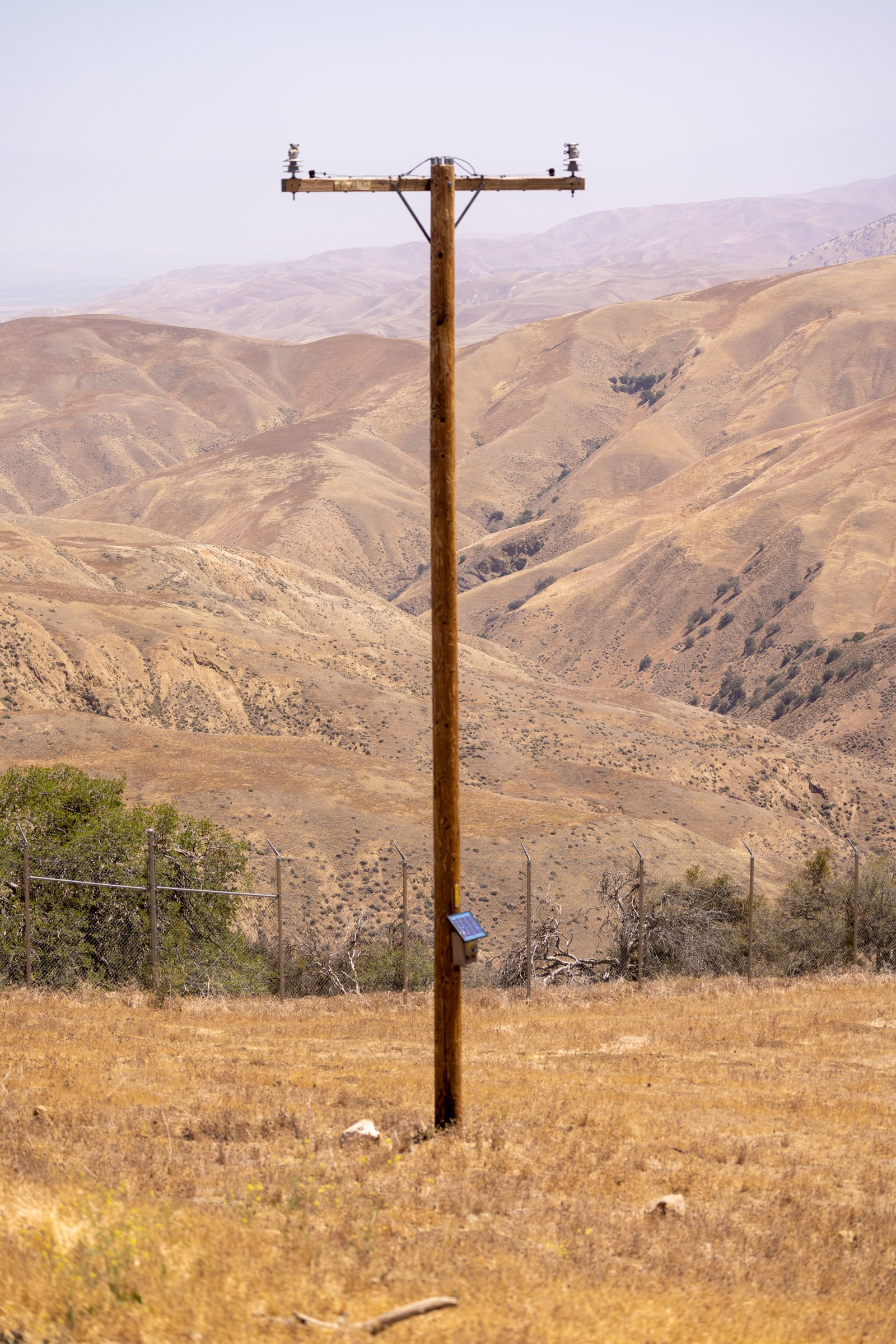 One of my pictures is of a telephone pole. It isn't connected to anything except a low voltage source which gives any condor alighting on it a mild shock. After a few times they stop landing on power poles. And even more interesting, condors that have never undergone this aversion therapy have learned from their relatives who have. So many condors will not land on poles. With their 9' wingspan they can easily electrocute them selves by completing a circuit.