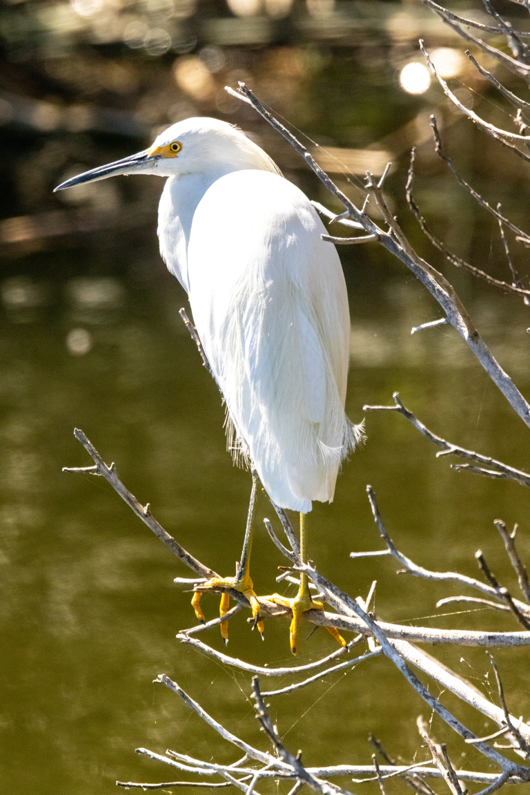 I had a few spots on my lenses so I tried cleaning them and went down to the Ventura settling ponds to check out how well I did. I am really enchanted with the Snowy Egret which is funny, because it the exact opposite of me. It can sit still for hours while I can sit still for seconds. It is always spotless and I always spill food and drink on myself. It is fashionable with its yellow shoes while I wear boring grey and dark colors.